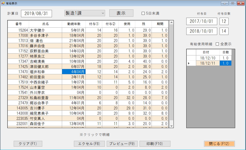 働き方改革で有給を5日間取得しなければなりません。リフレッシュ休暇も導入されました。有給の計算をエクセルなんかでしていませんか、ちゃんとデータベース化された勤怠管理を用いましょう。カスタマイズを行い、御社の勤怠管理に合わしてカスタマイズができますのでご相談ください。
