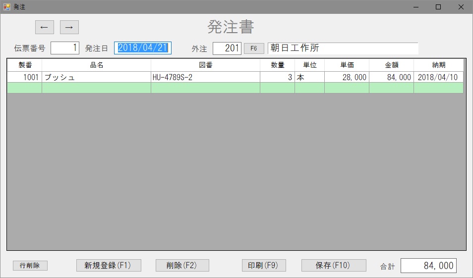 製造指図書(製造指示書)の発行、納品書、請求書、受注一覧表などの一連の事務処理用のソフトウェア,システム